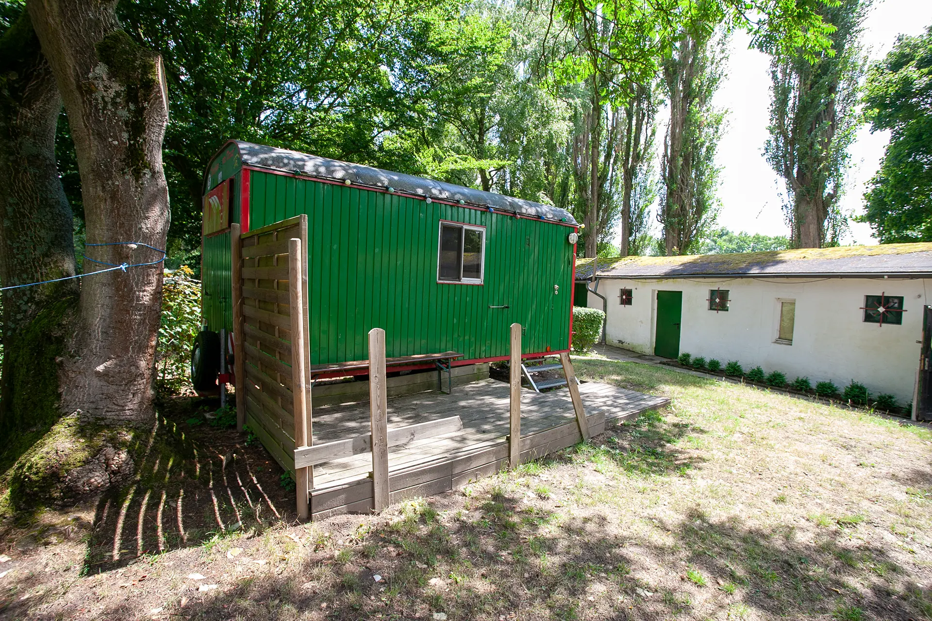 Zum Übernachten steht zusätzlich ein Bauwagen zur Verfügung.